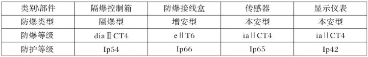 2、該裝置一般由隔爆控制箱、防爆接線(xiàn)盒、傳感器與硅示儀表組成,防爆與防護(hù)等級(jí)為: